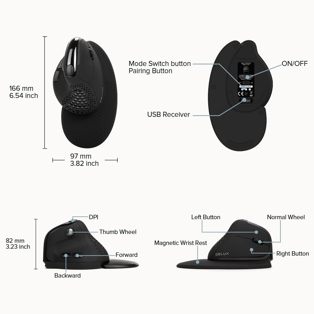 M618XSD Thumb Wheel Ergonomic Three-mode Bluetooth Rechargeable Mouse